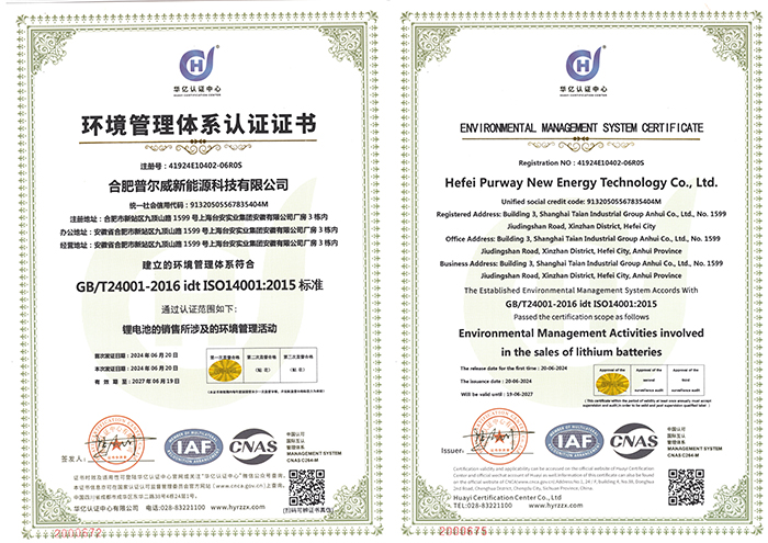 销售环境管理体系证书
